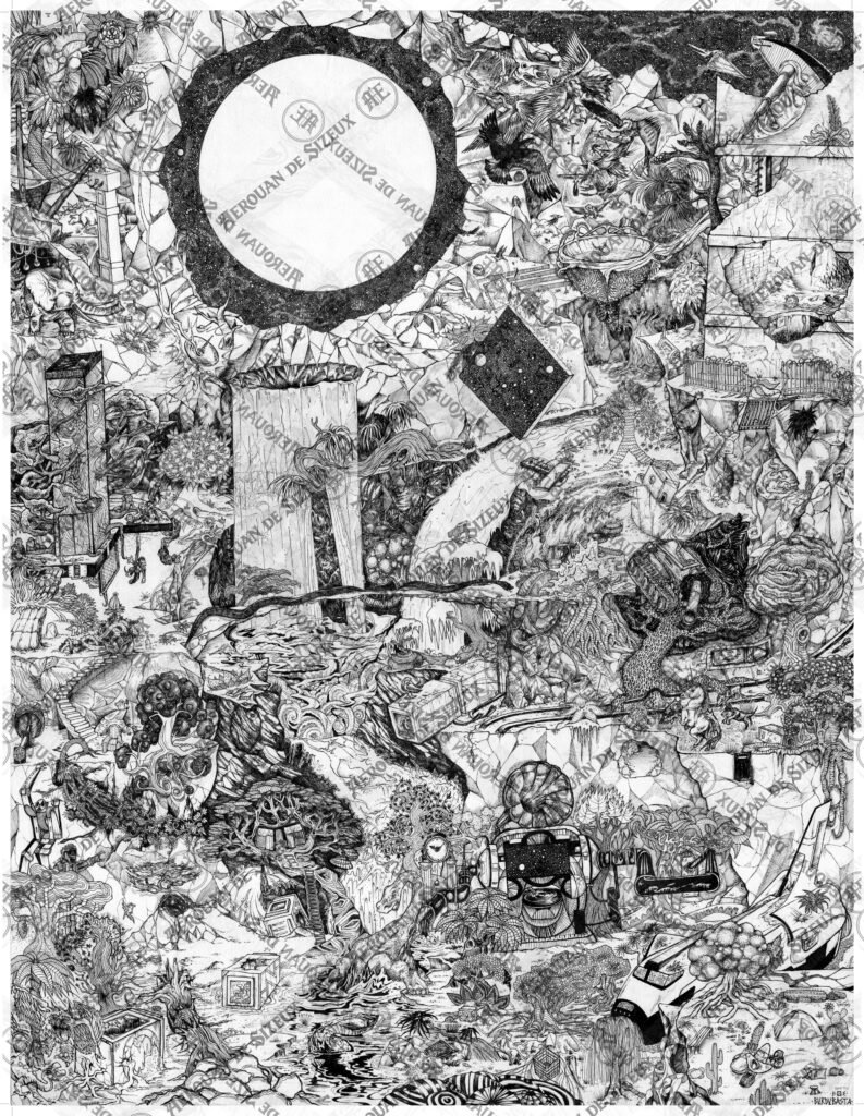 C’est la mise en image sous la forme de dessin en noir et blanc de mon univers symbolique intérieur.